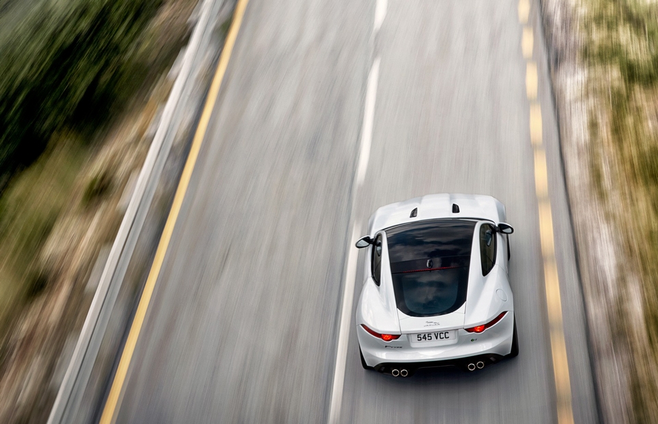 Three models of the Jaguar F-Type Coupe will hit showrooms: the base model, F-Type S, and F-Type R. The first one gets a 3-liter V6, pumping out 340 horsepower for a top speed of 161 mph and a 0 to 60 of 5.1 seconds; the Type S houses a 380-horsepower supercharged V6, pushing it to max runs of 171 mph and a 0 to 60 of 4.8 seconds; the headlining F-Type R steps it up with a 550-horsepower 5-liter supercharged V8, hitting top speeds of 186 mph and clearing a 0 to 60 in just 4 seconds.