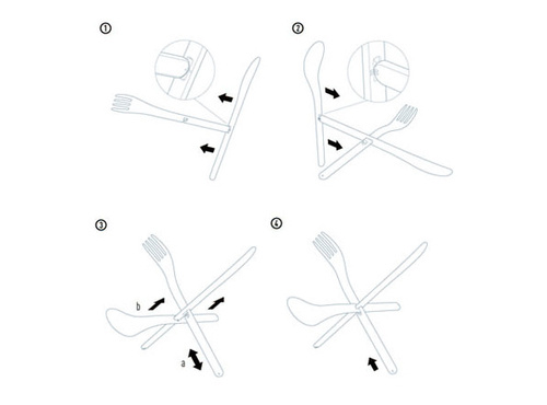 Join consists of three cutlery pieces: a spoon, a fork and a knife. All of them have varying types of cutouts along the center of the handle, which you can then use to assemble it into a free-standing puzzle sculpture. Fortunately, it comes with instructions (pictured below), so you can leave all the head-scratching to the other people in the table.