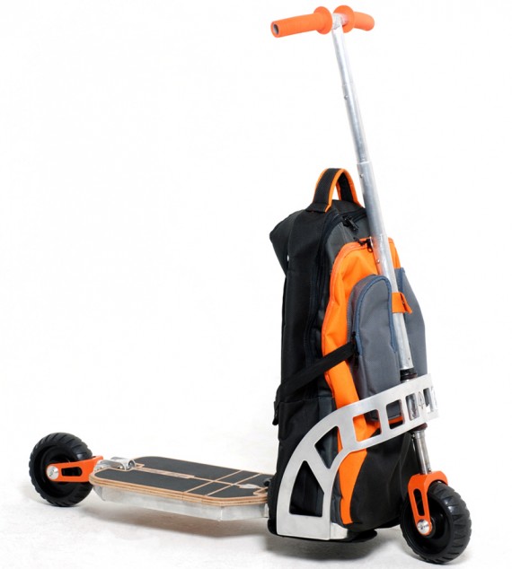 The scooter, which is constructed from aluminum to minimize weight, can hold riders up to 200 pounds. No word on how much the exact assembly weighs, though, so this could be a heck of a load to throw on your back.