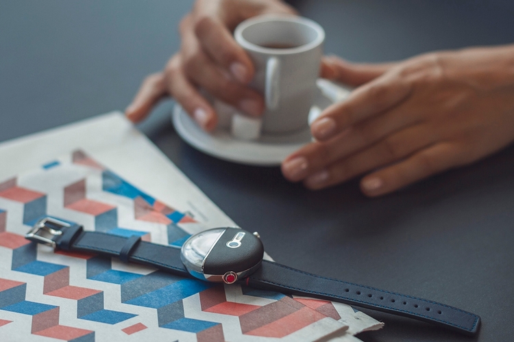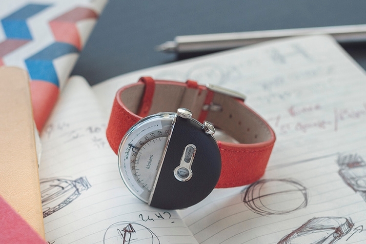 Similar to the Klok-01, it uses a watch case that’s made from a composite of stainless steel and technical polymer, with PMMA glass, Alcantara or leather band, and 5 meters of water resistance, so you don’t have to take it off when taking a shower. It’s slightly smaller but thicker than the first model, too, measuring 43.2 x 13.2 mm.
