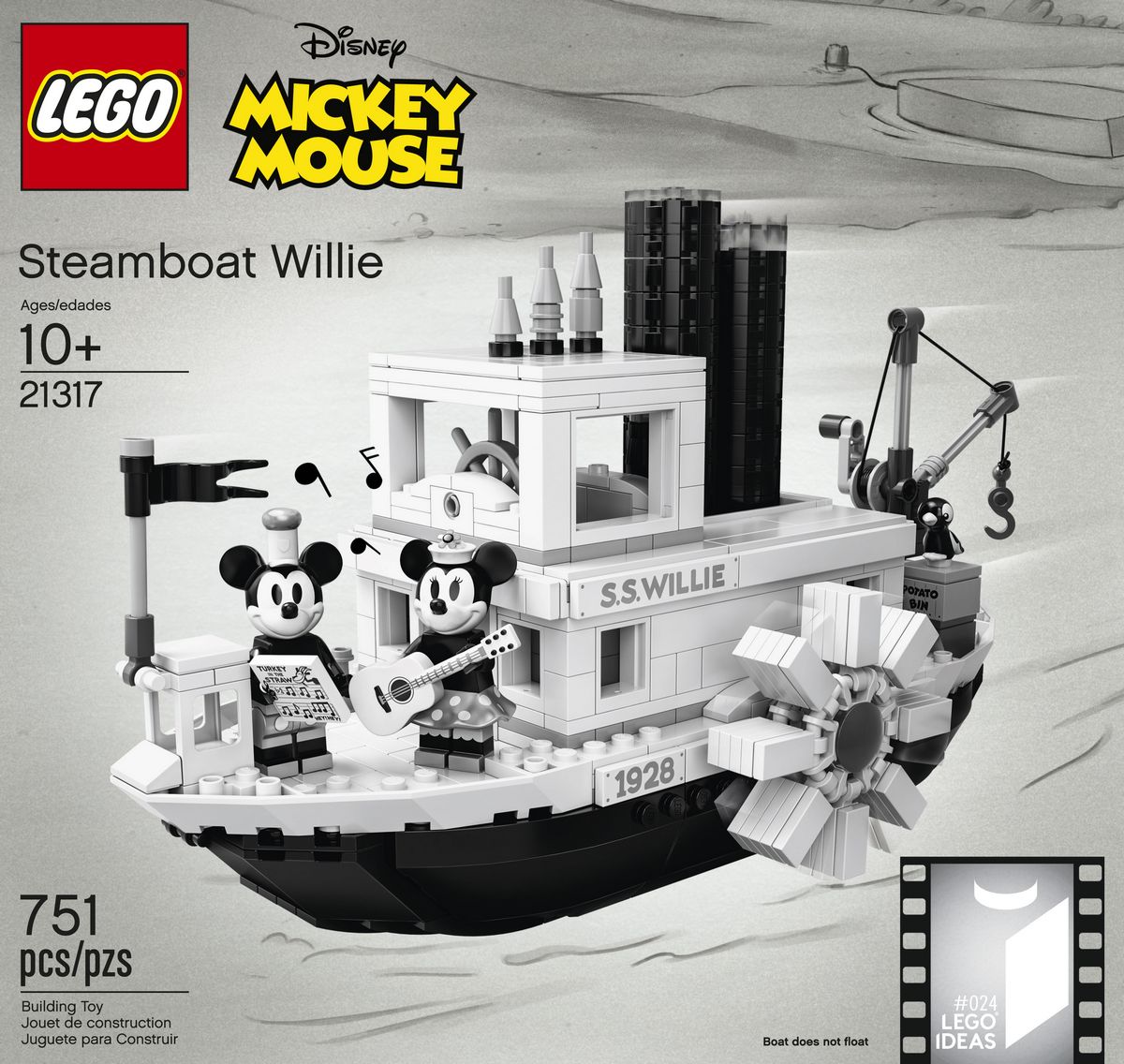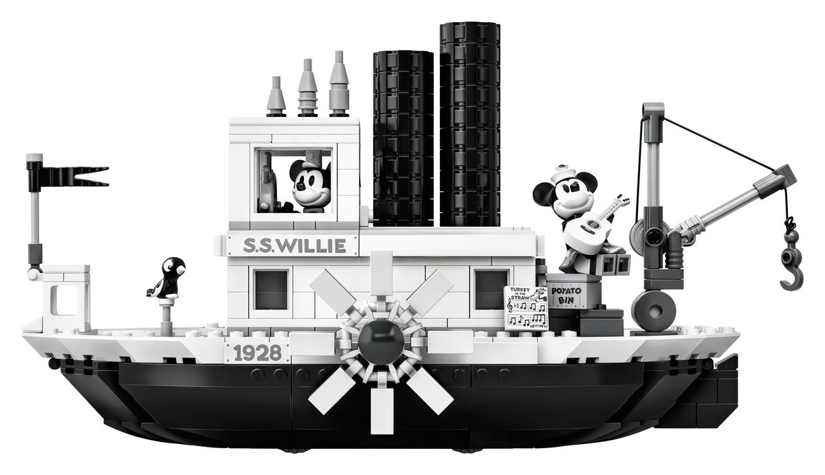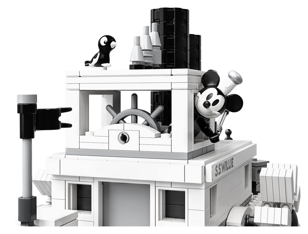 Build and display this collectible LEGO set or recreate your favorite scenes from the classic Disney Mickey Mouse cartoon, ‘Steamboat Willie’.