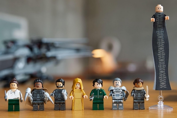 When assembled with the wings folded out, the vehicle measures 22 x 31 x 9 inches (length x width x height), so this thing will take a good chunk of room on any shelf or table. It comes with 1,369 parts, by the way, so while it should make for a challenging build, it shouldn’t take as long as some of LEGO’s bigger, more complicated models. They also include a total of eight minifigures, namely Paul Atreides, Leto Atreides, Lady Jessica, Gurney Halleck, Chani, Liet Kynes, Duncan Idaho, and Baron Harkonnen decked in his very, very long robe.
