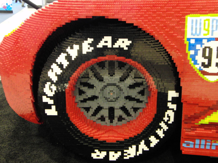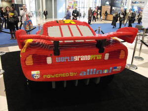 This model of Lightning McQueen is made up of 325,000 LEGO bricks and weighs a solid 3 tons. The awesome model was build by LEGO Master Builders and took total of 2,000 hours to complete. We were in Manhattan today covering Toy Fair 2011 and this thing was like the the perfect appetizer greeting everyone at the entrance. More cool stuff from Toy Fair to follow soon.
