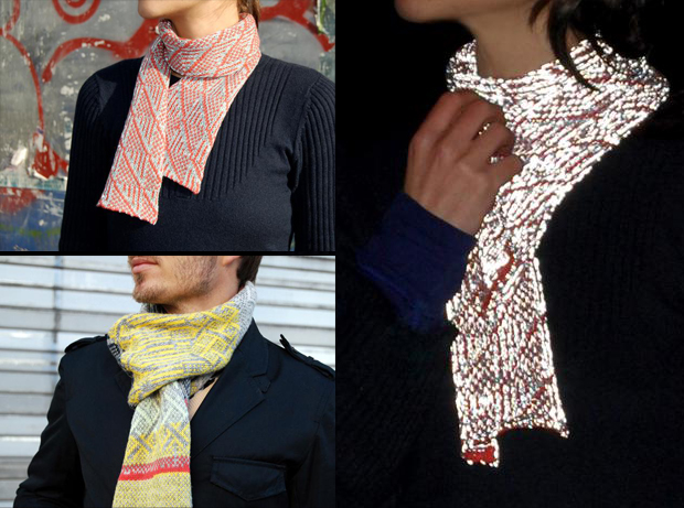 Lost Value’s new Lflect line of knitted accessories could prove an even nicer compromise, allowing you to wear reflective night-time gear that look damn swell even under daylight.  The line features several accessory pieces (scarves, hats, bags, ties and even pompons) that you can put on daily to serve as extra illumination to make sure you’re seen under the dark.