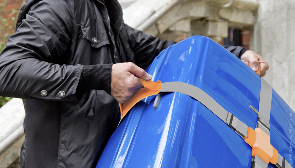 All suitcases should have two handles — one on top and another on the side, so you can comfortably grab onto it with both hands. Since they don’t, somebody on Quirky made a strap to do just that and it’s called Lift.