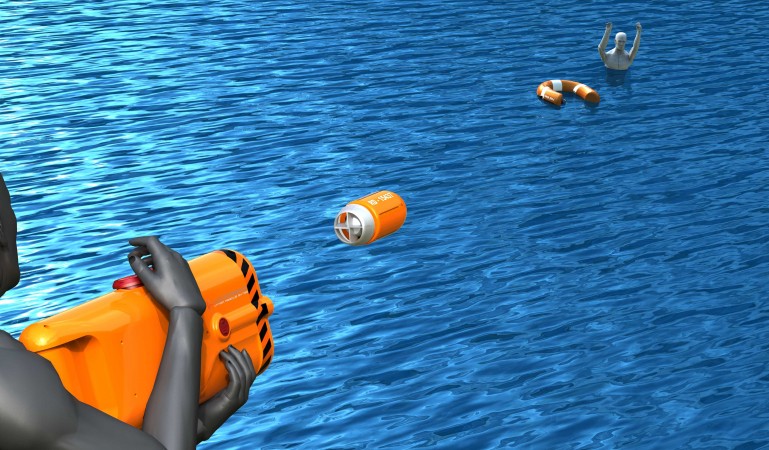 The Longreach uses two primary components: a portable rocket launcher and a compact missile (small enough to fit into a cupboard standing). Using the same propulsion technology employed in bazookas, the launcher can shoot hydrophobic foam missiles at a distance of over 490 feet. As soon as it hits the water, it expands to 40 times its size within 15 seconds, giving the drowning victim a bouyant float to hold on to while waiting for help. Each one has an attached flare, as well, to help the waterlogged person attract attention at night.