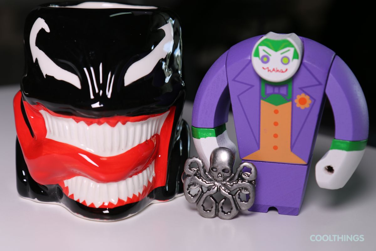 First up is one of Marvel’s massive Molded Mugs. We got the one with Venom in it, although some crates, apparently, come with a Carnage mug instead. We actually don’t know which of those two is uglier, but our Venom mug is definitely horrifying. I mean, taking a sip in this is like having a nightmare to go with your coffee.