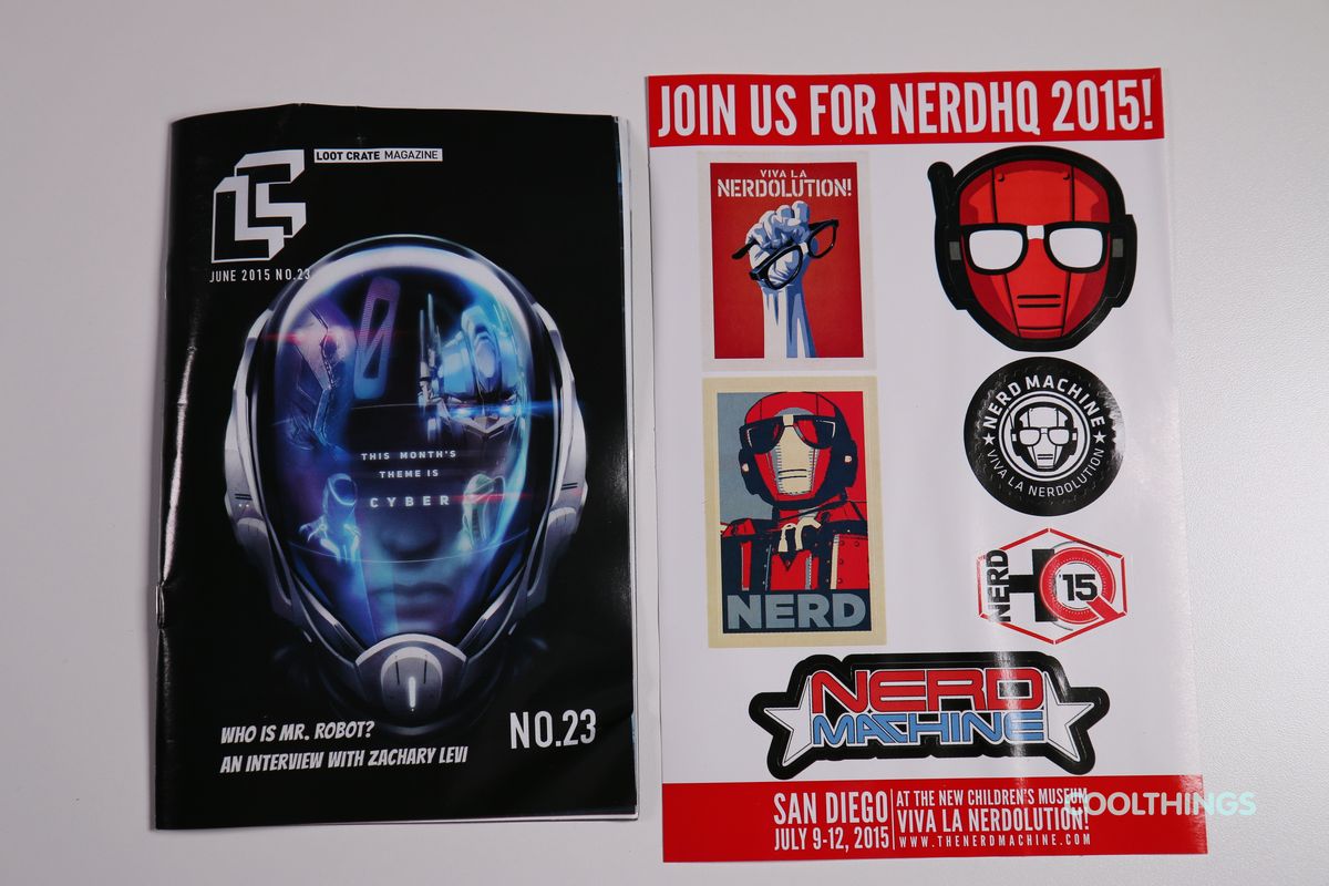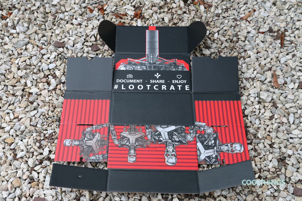 We got our grubby hands on the Loot Crate June 2015 box. Enjoy the pics! Terminator Genisys Endo Skull 1/2 Scale Replica Battlestar Galactica Cylon Target Poster Set (Quantum Mechanix) Battlestar Galactica Cylon Target Poster Set (Quantum Mechanix) Borderlands Zer0 Game Mat Cybertronic Prime T-Shirt Glow In The Dark Circuit Gadget Pouch Cybertronic Prime T-Shirt Loot Crate June 2015 Box – Opened Up Nerd HQ Sticker Sheet (The Nerd Machine) along with Loot Crate Magazine Terminator Genisys Brain Chip Keychain Terminator Genisys Brain Chip Keychain Terminator Genisys Endo Skull 1/2 Scale Replica Terminator Genisys Endo Skull 1/2 Scale Replica With Box Terminator Genisys Endo Skull 1/2 Scale Replica
