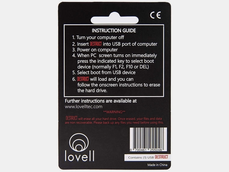 The Lovell Destruct is a key-shaped USB dongle, complete with a hole at the head, so you can hook it in your key fob, giving you easy access to a data remover right in your pocket. To use, simply set the computer to boot from USB, plug it into an available port, and leave it to go to work. The auto-launching software will then proceed will the data removal process, which spans three successive passes, all launched one after the other. Do note, this thing goes straight to work deleting content from all hard drives hooked up to your PC, so make sure you don’t have any external drives hooked up or any data lying somewhere that you actually want to keep.