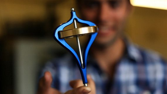 Created by UK-based Manuka Makers, it’s a gyroscope installed on a frame similar to a spinning top. Simply spin the disk in the middle (they recommend winding a string along the stem holding the disk and giving it one strong pull), prop up the structure anywhere you want, and watch it keep its balance while spinning over and over in a manner that appears to defy the laws of gravity.