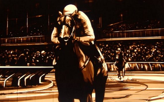 Max Zorn’s pieces are fashioned completely from brown packing tape, cut and laid out in various layers, on a plexiglass canvas that’s then held inside a backlit frame. Turning on the backlighting completes the piece, with the thickness of the layers along the canvas defining the amount of light that can get through, creating varying shades of color from an erstwhile industrial material. Seriously, these pieces are pretty amazing. What’s more amazing, though, is how the heck does he use tape and not get pieces of visible dirt stuck on it? That sounds like a whole lot of work to get right.