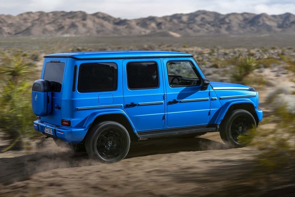 The Mercedes-Benz G 580 with EQ Technology maintains the off-road chops the brand has been known for. There’s a G-Turn mode that allows drivers to spin the car on its axis to better maneuver on loose surfaces, a G-Steering mode that drags the inside rear wheel to help the car turn on a tighter axis, and a Crawl function that maintains steady slow speeds up to 5-mph on rocky terrains. Other off-roading details include 9.8 inches of ground clearance, 32-degree approach angle, 30.7-degree departure angle, 20.3-degree breakover angle, and the ability to wade in waters up to 33.5 inches deep.