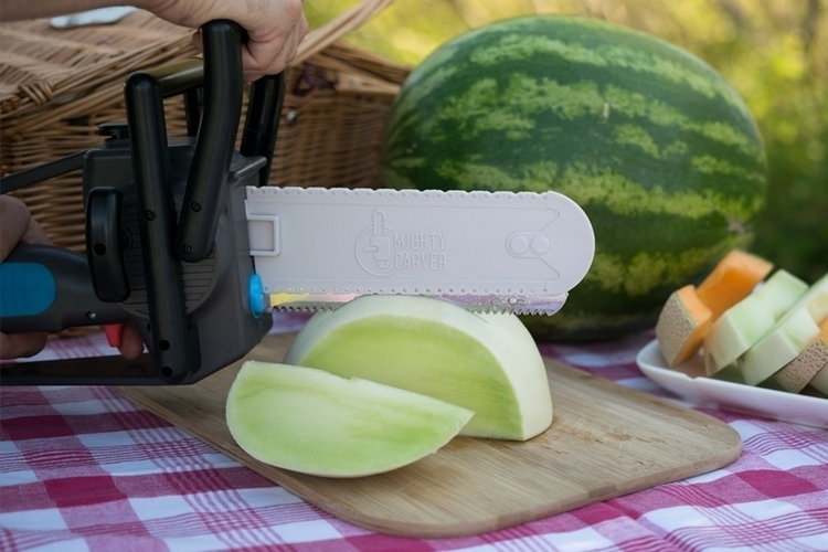 The Mighty Carver measures 19 x 5.8 x 8.7 inches (length x width x height), so it’s way smaller than an actual chainsaw, allowing you to keep it somewhere in the kitchen instead of the work shed in the backyard. Granted, it’s not small enough to fit into kitchen drawers, although you can probably find a shelf or cabinet that will be able to accommodate it. Do note, it’s not battery-powered, so you’ll have to plug it in to a wall outlet before it will perform the motorized carving, so it’s not the most convenient thing to bring to the dinner table, since kids running around the kitchen will probably trip on the power cable (and, yes, no amount of telling them to cut it will make them stop).
