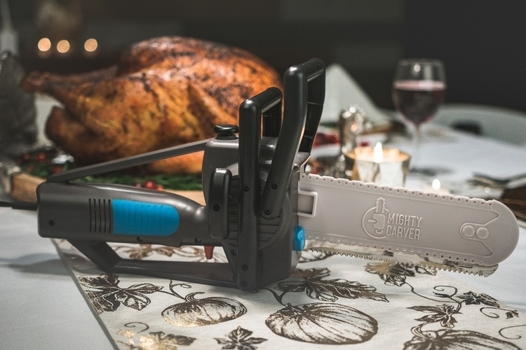It looks like a toy chainsaw. You know, the kind your kid will be wielding around in Halloween while dressed in his killer Leatherface regalia. The Mighty Carver, though, isn’t intended as a children’s Halloween prop. Instead, it’s a motorized carving knife that you can use to slice that Thanksgiving turkey into dinner-ready serving-size pieces.