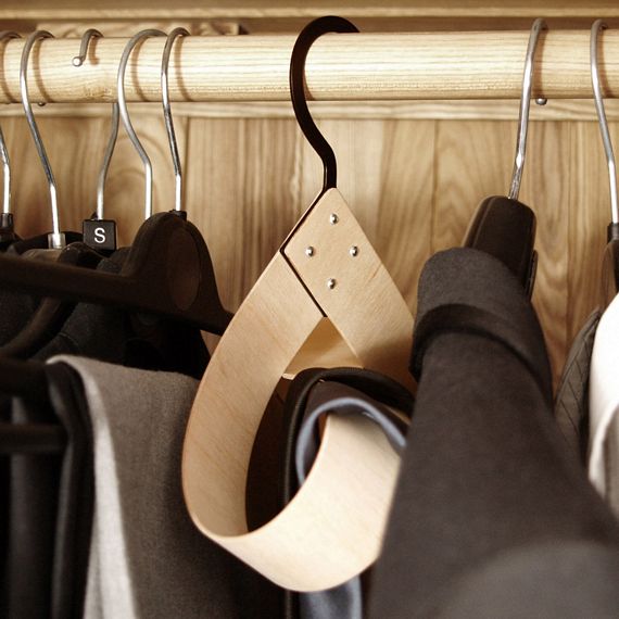 The Mobe Accessories Hanger performs its versatile storage function by using a length of plywood about an inch or so wide that’s bent into winding loops just like your favorite diecast derby tracks. That way, those long garments you hang onto it actually has a generous surface area to grip onto, minimizing the chances they’ll slide off even while you violenty rummage through the closet, looking for the lucky dress shirt you’re planning to wear for this morning’s job interview.