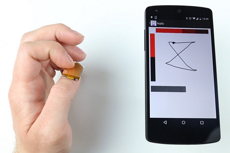 Created by a group of MIT researchers, it’s a wireless mobile controller that looks nothing more than a decorative nail sticker at first glance. Under the sticker’s colorful facade, though, sits an ensemble of tiny electronic components that allow it to pair with devices over Bluetooth to serve as a miniature trackpad.