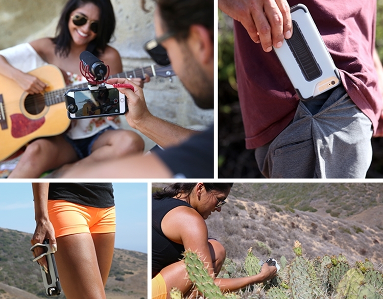 Sporting a patent-pending rail-mount system on the back, the case can be reinforced with any of multiple accessories, equipping your smartphone with new tools for mobile photography. Whether you’re looking to attach a better mic to your phone, give it more convenient shooting ergonomics, or just mount it to a standard camera tripod, just swap in the desired accessory and you’ll be set.
