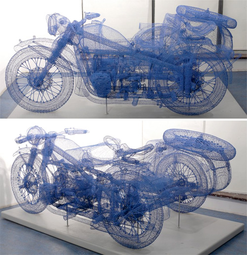 Blue CJ750, A Wireframe Motorcycle With Sidecar Sculpture If you can make the Blue CJ750 move, you can literally roam the streets looking like a badass...ART