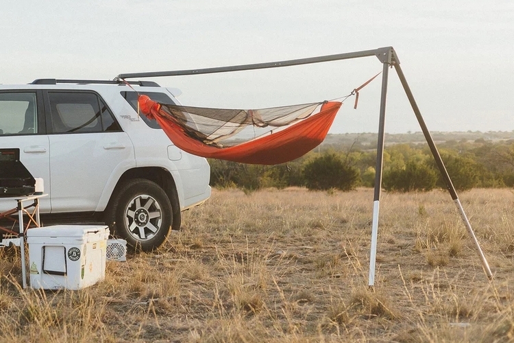 Kammok Outpost Uses Your Roof Side Bars To Set Up A Hammock Stand Setting up a hammock is easy enough. Just find a tree, a post, or some other similar structure...GEAR