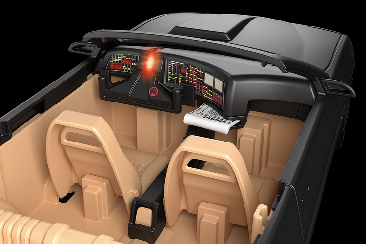 The Playmobil Knight Rider K.I.T.T. comes with some of the gadgets that the TV vehicle has appeared with throughout its run on the show. Chief among these is a rotating number plate (because… you know… law enforcement needs fake license plates or something), as well as a printer at the bottom of the dashboard for printing out mug shots. There’s also a grappling with cord, although it doesn’t pop out of any section of the car, instead having been designed to attach to the car’s rear bumper.