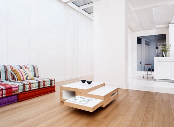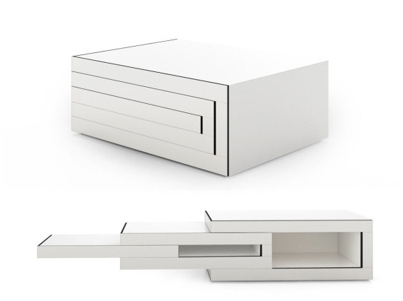 Designed by Reinier de Jong, it’s an expandable coffee table. When you just want a compact coffee table to hold a couple of books and put your feet up on, it measures just 23.6 x 31.5 inches (w x l). In case friends decide to come over for tea, coffee, and some spray-on cupcakes, though, it can expand to a three-level tabletop that measures a more generous 51.1 x 66.9 inches.