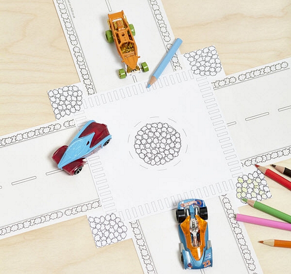 All roads, corners, and roundabouts come printed with the same line drawing, which you can customize by coloring over, making for another fun activity you can do with the kids. Need to pack up the race track? Simply roll the roads back onto the spool, set aside the add-ons, and you’re done. No mess.