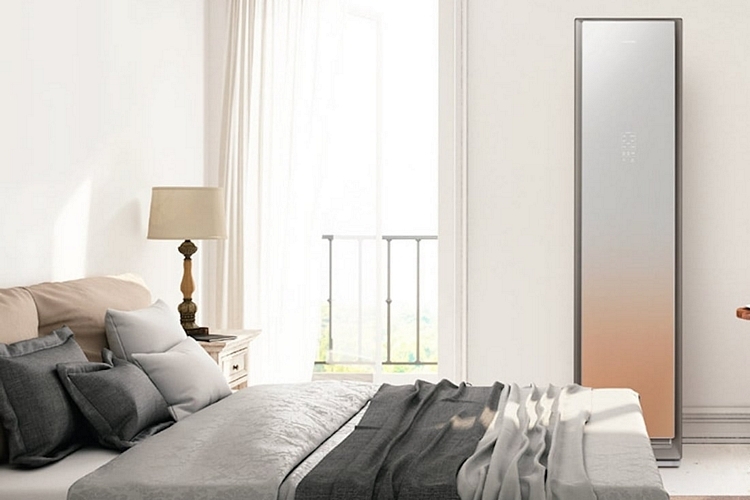 Designed to integrate with most contemporary homes, the appliance is styled like a mini-closet, with a mirror at the door, allowing it to look like an unassuming standing mirror when placed in any room in the house. At least, that’s the case when you look at it from the front, as the boxy proportions become apparent once you view it from the side.