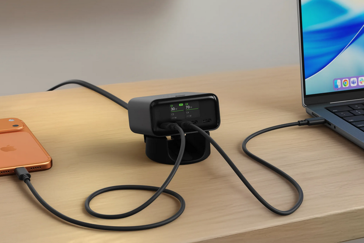 The small digital display situated right next to the ports can show in real-time the total power output for the whole charger and the amount of wattage going out per port, allowing you to see whether your laptop is getting the maximum amount of charge as you like or if one of the other devices plugged in is taking up too much power. High-draw devices should be plugged into the ports labeled C1 and C2, as they both have 140W output, allowing you to take advantage of the charger’s full capacity, so long as you have a compatible 140W-rated USB-C cable. The other two ports only have a 40W output, which should make them useful for smartphones, non-Pro tablets, wireless earbuds, and similar devices.