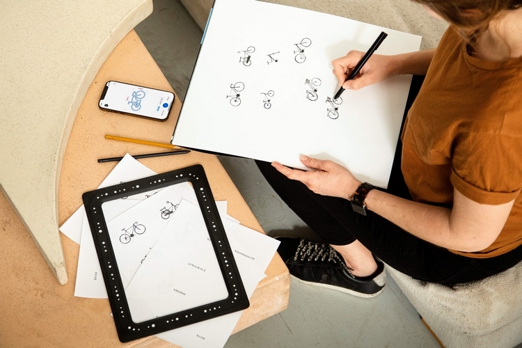The Shaper Trace actually comes with a physical component called the Trace Frame, which is a rectangular frame with dot markings on it. Before taking a photo of a physical drawing, you have to place the frame on top of the sketch, basically framing it. Do note, you will need to include the frame in the photo, as the app uses it to flatten the image, remove any perspective distortion, and reproduce the exact scale of the original drawing in the resulting vector output.