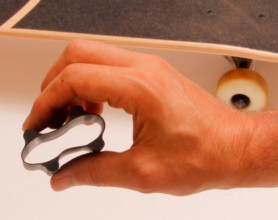 A tool that makes learning new skate tricks simpler and safer, it attaches to the board’s wheels, keeping it from moving before and after performing a trick. Basically, it lets you practice kickflips, ollies, and other tricks while your board stays in place, so you can develop your muscle memory without having a bodypart crash into the pavement every other time.