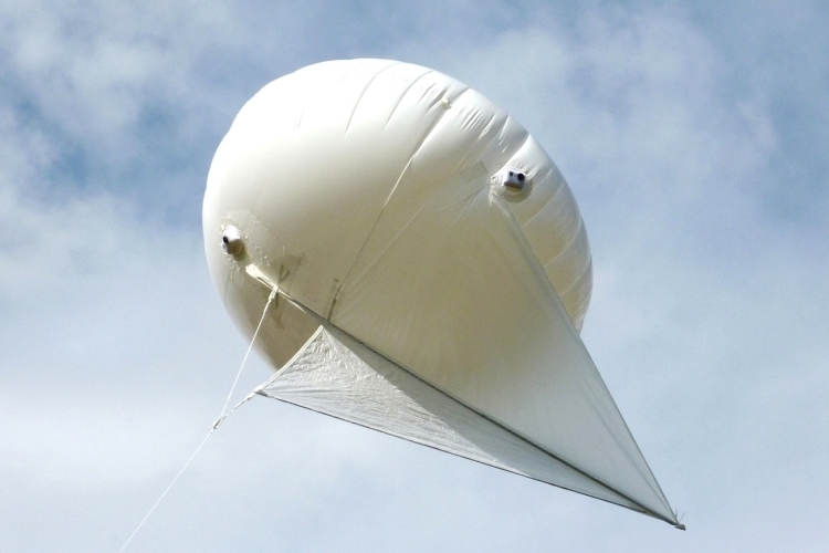An aerostat, it uses an unpowered balloon to rise in the air, eliminating the need for batteries like conventional drones. Since balloons tend to be unstable, they attached it to an airfoil kite, which provides balance and stability, keeping the assembly from flapping around the way traditional balloons would.