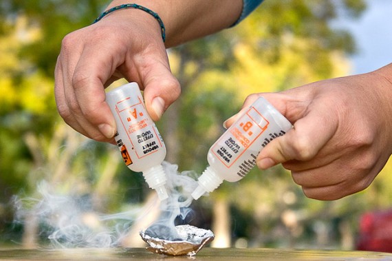 Each bottle contains 25 ml of whatever magical concoction makes the Smoke Drops’ wizardry possible, so a set should hold you over for a good amount of shoots.  It’s corrosive, though, so keep away from body parts and stuff you don’t want to ruin. The Photojojo website suggests mixing it on glass and similar materials.
