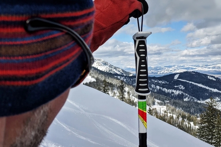 The SnoWander PoleClinometer is a sticker kit with three sizes of stickers designed for different pole diameters. Each sticker is printed with a graphical guide that you can use to determine the angle of a slope via line of sight, with avalanche-safe angles colored green (25 degrees and lower), low avalanche risk angles in yellow (30 degrees), and high avalanche risk angles colored red (35 degrees onwards). According to the outfit, you can use it to determine slope both from the side, which is the easiest application, and for sighting down from the top. Granted, using it to determine slope sighting down can be a little trickier, but you should be able to get the hang of it after a few times by comparing your measurements from the side and from the top. Suffice to say, it’s pretty impressive.
