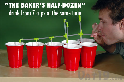 How many ridiculous convolutions can you make with this set? Being the veritable LEGO of drinking equipment, I’d say plenty. With twelve long straws (5 inches), twelve short straws (3 inches), four U-shaped connectors, four elbows, two T-connectors, eight joints and two four-way intersections, you can regale yourself with the knowledge that you can have a new straw everyday until the end of time (which, according to Nostradamus, will be 2012).