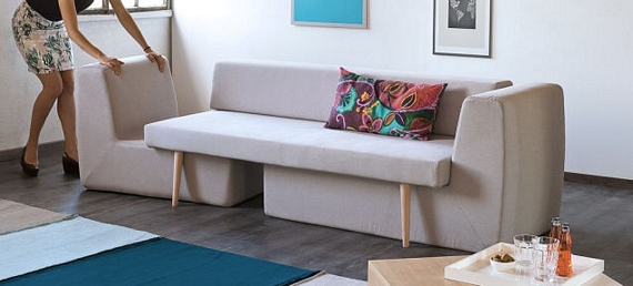 The Sofista Couch Can Transform Into A Three-Piece Living Room Set Created for small homes, the Sofista can transform from a three-person sofa to a three-piece living room set...FURNITUREHOUSE
