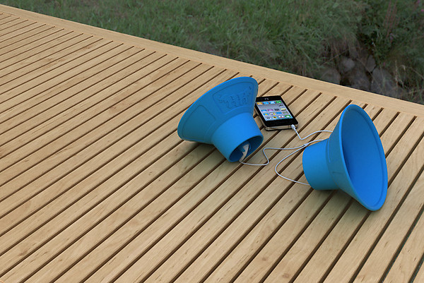 The Tembo Trunks are horn speakers with a cone shape and an ear-like slot with lugs around the back for plugging an earbud (one earbud per speaker). Made from 100% high-grade silicone rubber (non-oil based) with no actual electronics inside, each speaker can be flattened for squeezing into your backpack, making it very convenient to bring along. Since it uses no power, you don’t need to pack batteries, too, leaving you with a way to play mildly-loud music while everyone else’s rechargeable speakers sit in their bags after a few hours of use.