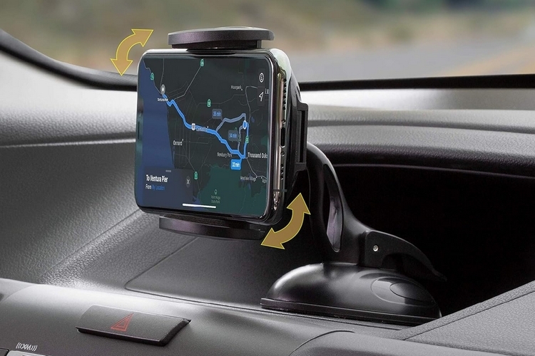 If your car has a CD slot in a good position to hold your phone, you can opt for this car phone mount, which uses the disc slot to hold the mount in place. It gets its “One Touch” name from the padded button at the back rest of the cradle, which loosens or tightens the clamp grips with a single touch. Initially, use the release bar to fully open the clamp, put your phone in the cradle, and push the phone in to press the button that automatically tightens the grip. To remove the phone, simply push it back again to press the same button and loosen the hold. It’s a simple but useful design that makes mounting your phone a breeze. Features include self-centering arms for added stability, a rotating design that lets you use it in portrait and landscape, an integrated cord organizer for cable management, and a maximum clamp width of 3.5 inches to accommodate even the biggest modern smartphone.