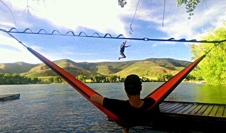 The Tree-O Frame is a Y-shaped webbing frame consisting of two eight-foot lines and one 14-foot line, with a 14-foot strap at the end of each line that lets you loop it securely around trees. It comes with 10 loops on the shorter lines and 12 loops on the longer one, so you can mount the hammocks really close together or a bit farther apart. To set up, simply strap each end of the frame onto a different tree (it doesn’t matter how the trees are spaced), clip the carabiners on your hammocks onto loops in two different lines, and you’ve got a set of hanging beds waiting for your crew to chill on. Each frame can support up to 800 pounds, so you can use larger hammocks if you want a bit more people joining in on the fun.