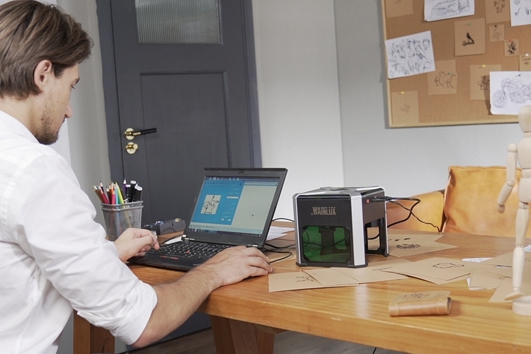 It has onboard Wi-Fi, so you can send designs to the device either using your smartphone (iOS and Android) or a PC (Windows and Mac OS), as well as a USB slot, in case you want to tether it to your computer instead. Features include built-in protective lenses (no need to wear safety goggles), safety sensors (shuts down immediately when it detects overheating or unusual motion), and a design that makes it easier to replace the laser head for maintenance.
