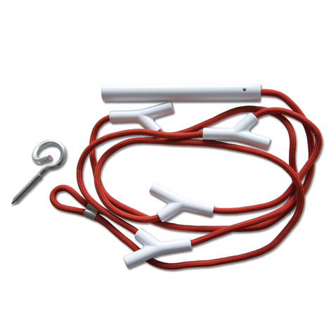 The Wardrope consists of a 300 cm rope with four Y-shaped hooks integrated into its length. All four hooks can be moved across the length of the rope while unloaded, so you can set it up at whatever height or distance you need. Once you hang something on a hook, though, it locks right on its spot. A steel weight at the bottom of the rope keeps it taut, which should prove especially useful while the hooks are still empty.