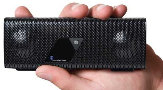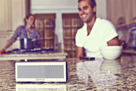 While there’s no way the Soundlink will fit in your pocket, the design makes it just as easy to take along — it comes in a boxy form factor that lets you carry it like a slightly oversized paperback or a netbook (about 9 inches long). It comes with a built-in cover that secures the hardware when you take it on the road, apart from offering resistance to salt-fog, sand, wind, moisture and repeated drops. Bose claims the wireless speaker has been engineered to reproduce “full-range audio from a single, hand-held enclosure,” giving it clear high- and mid-frequencies, as well as deep low notes.  Onboard battery is rated for 8 hours. [Amazon]