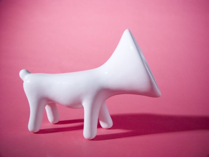 Hi-FiDo is a 150-watt speaker clad in an all-white, 40 x 30 x 25 cm ceramic frame that looks like a toy dog with four short legs, a cute little tail and a giant mouth. Sound pipes through that large gorge of a head, pumping out presumably excellent-sounding music from your favorite audio source (it can connect to your iPods and other media players via auxiliary cable).