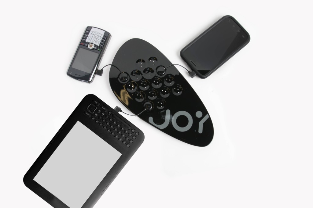 Made by The Joy Factory, the device sports a sleek flat shape that makes it look like a giant guitar pick (or a fancy drink tray). Layered on the top side are multiple charging points where you can refill your drained cellphones, tablets, e-readers and USB electric razor.